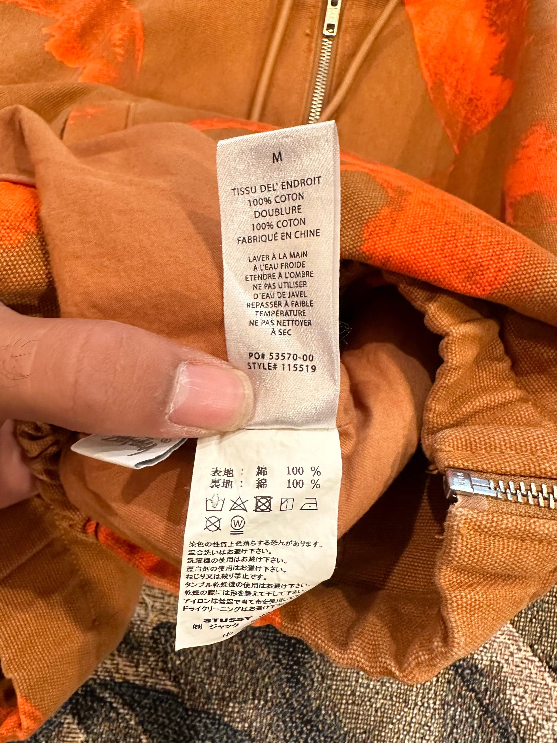(M) Stussy printed canvas work jacket coat