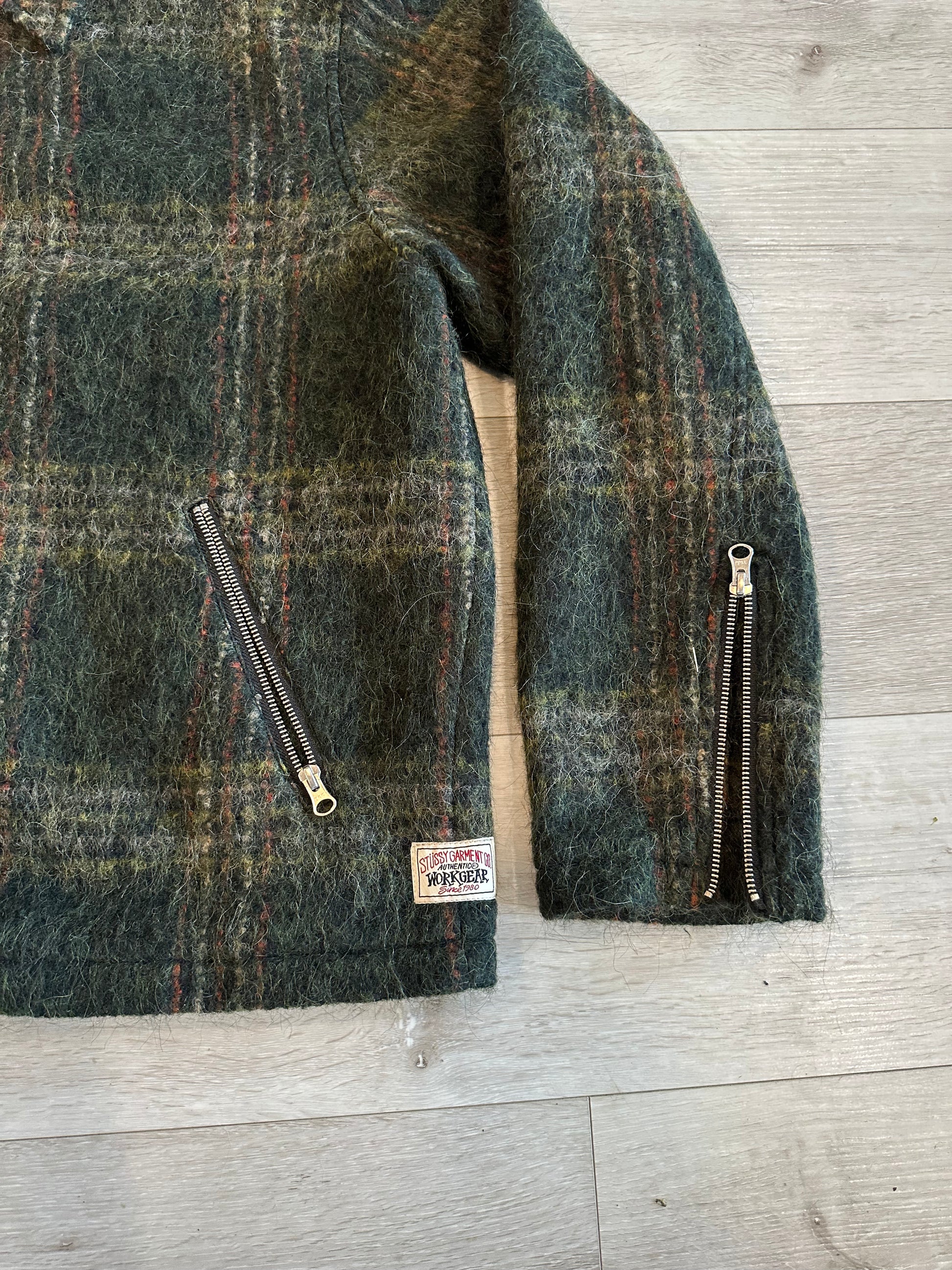 STUSSY zip up FLANNEL jacket